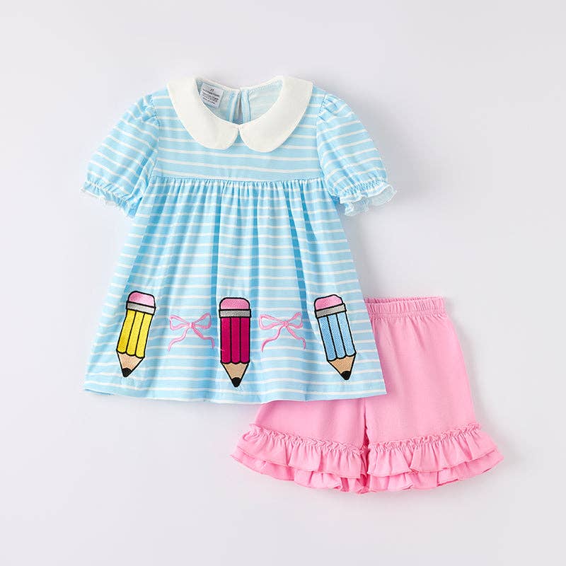 Blue Stripe Cotton Embroidered Football Ruffle Bubble
