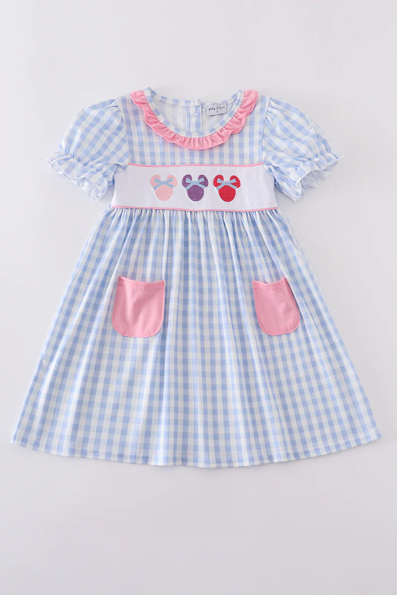 Blue character embroidery gingham ruffle
