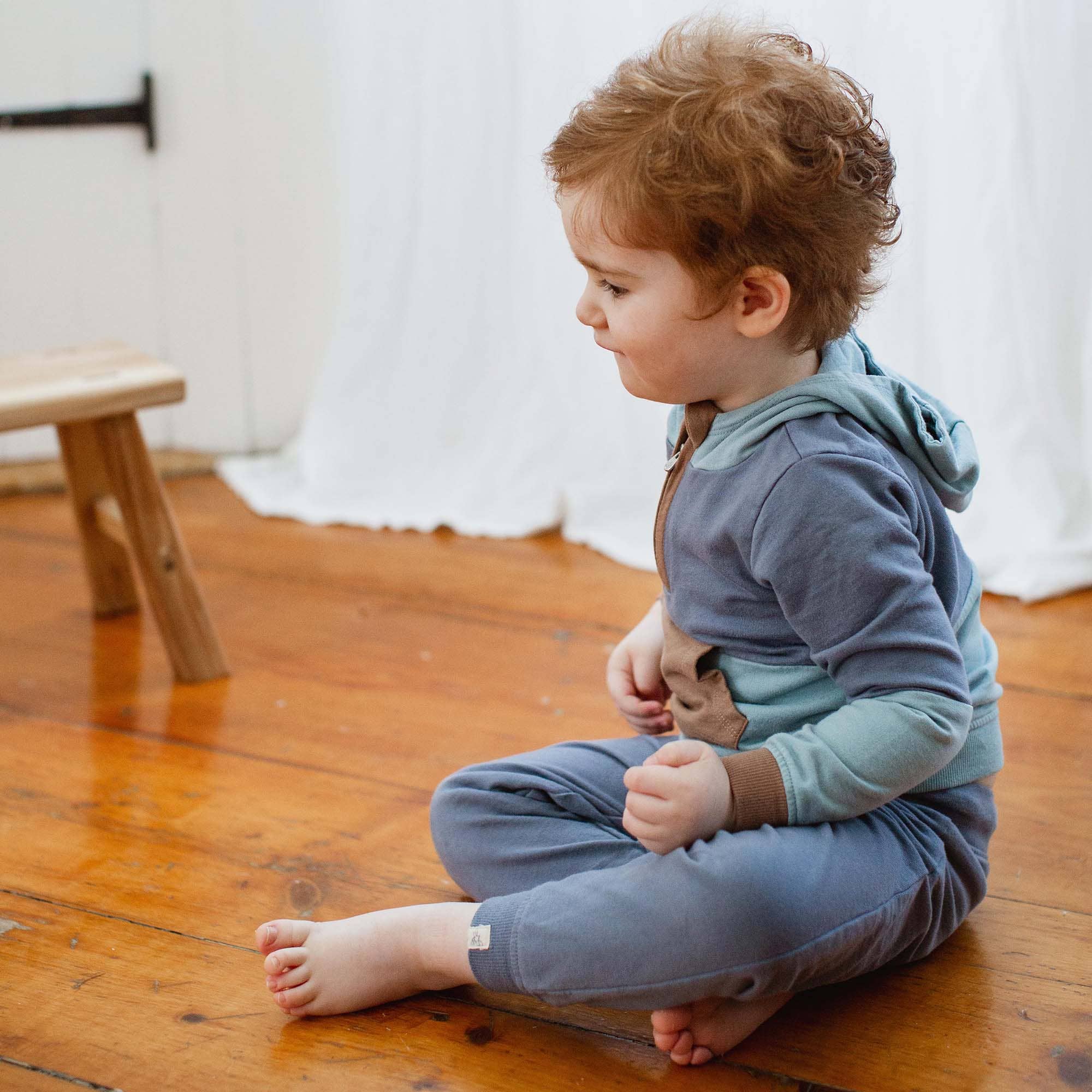 Your little bee will be casual and cool in this colorblock sweatshirt and jogger set! * Color blocked sweatshirt and jogger set * 100% organic cotton * French terry sweatshirt and joggers * Color blocked sweatshirt * Functional drawstring on joggers * Quarter zip opening with zipper guard