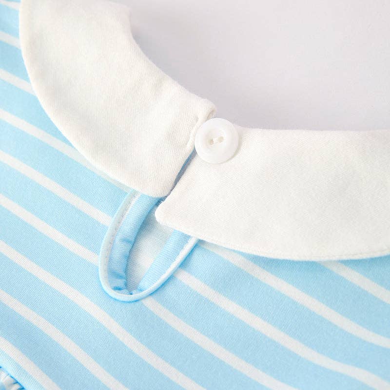 Girls Back To School Blue Stripes Pencil Embroidered Short Set