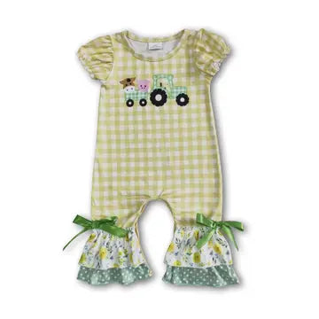 Girls Yellow Checked Romper with Ruffle Flare Legs