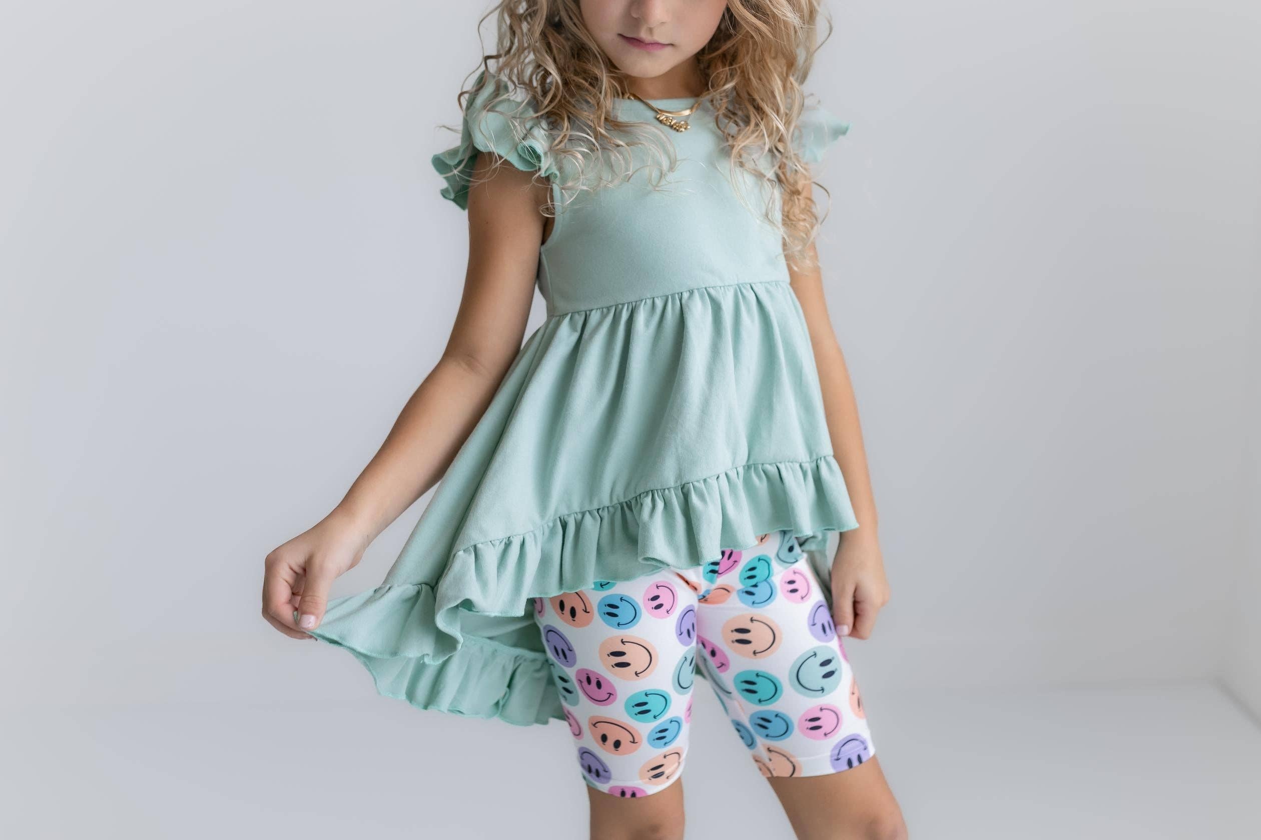 Kids Mint Green Smiley Face Hi Lo Spring Summer Short Set