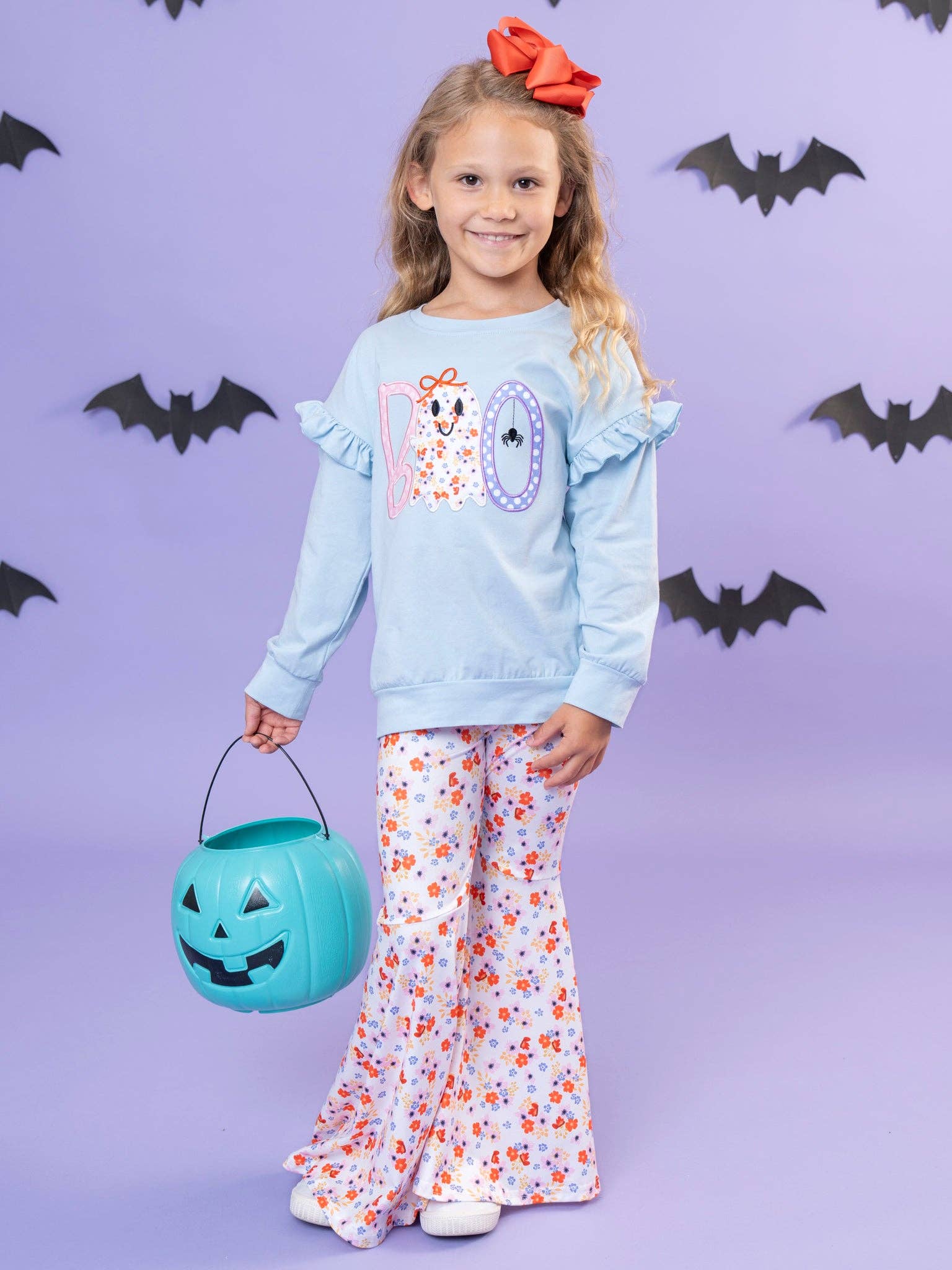Lil’ Miss Boo Embroidered Ruffle Bell Bottom Outfit