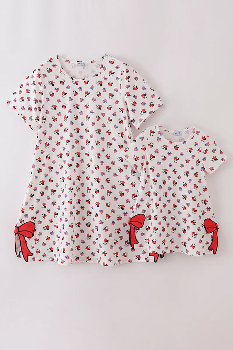 Mommy and Me Character print bow applique