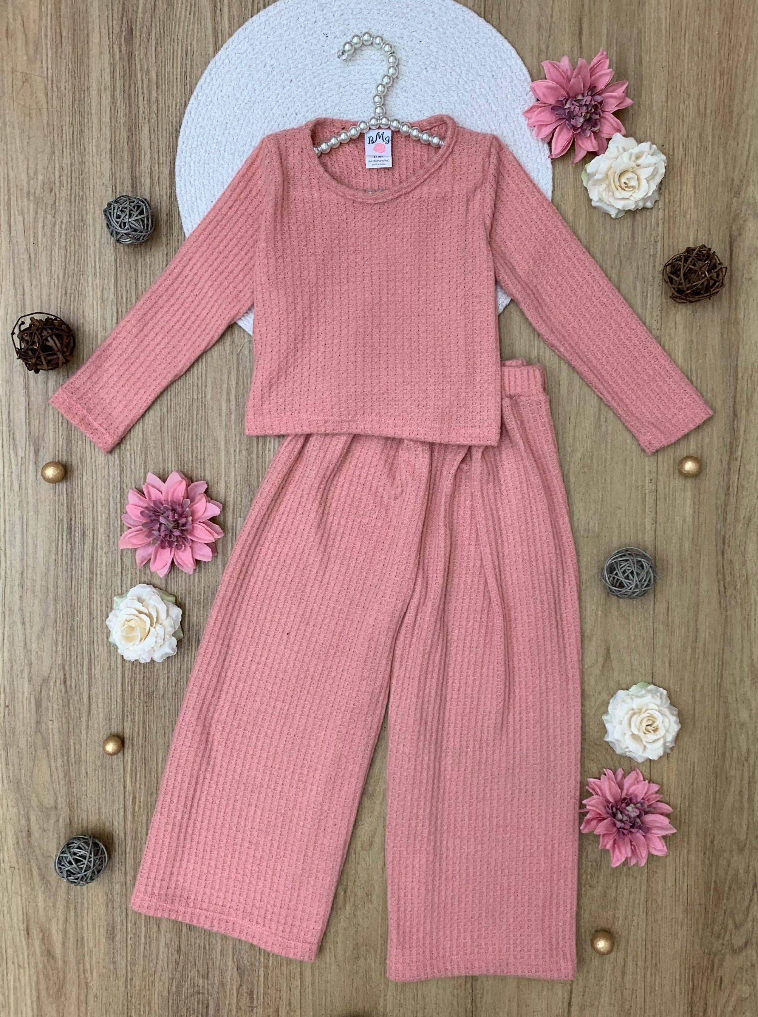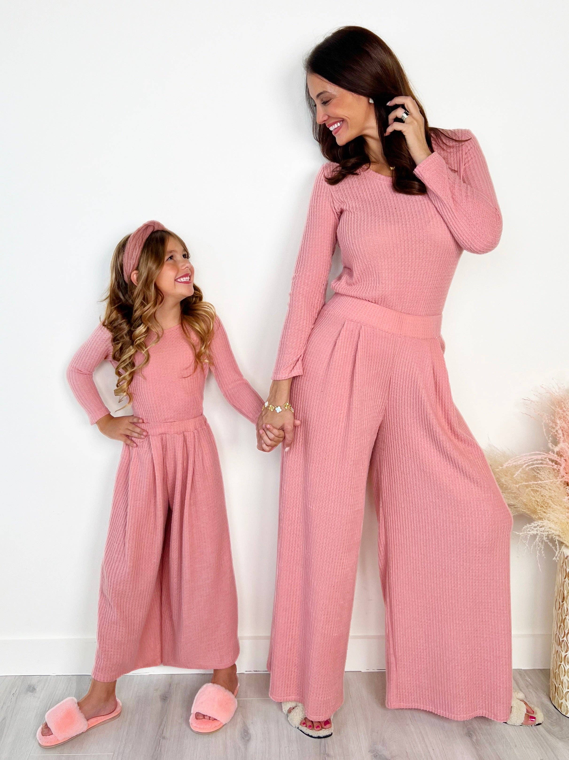 Mommy and Me Chic Pink Waffle Knit Pant Set: Pink