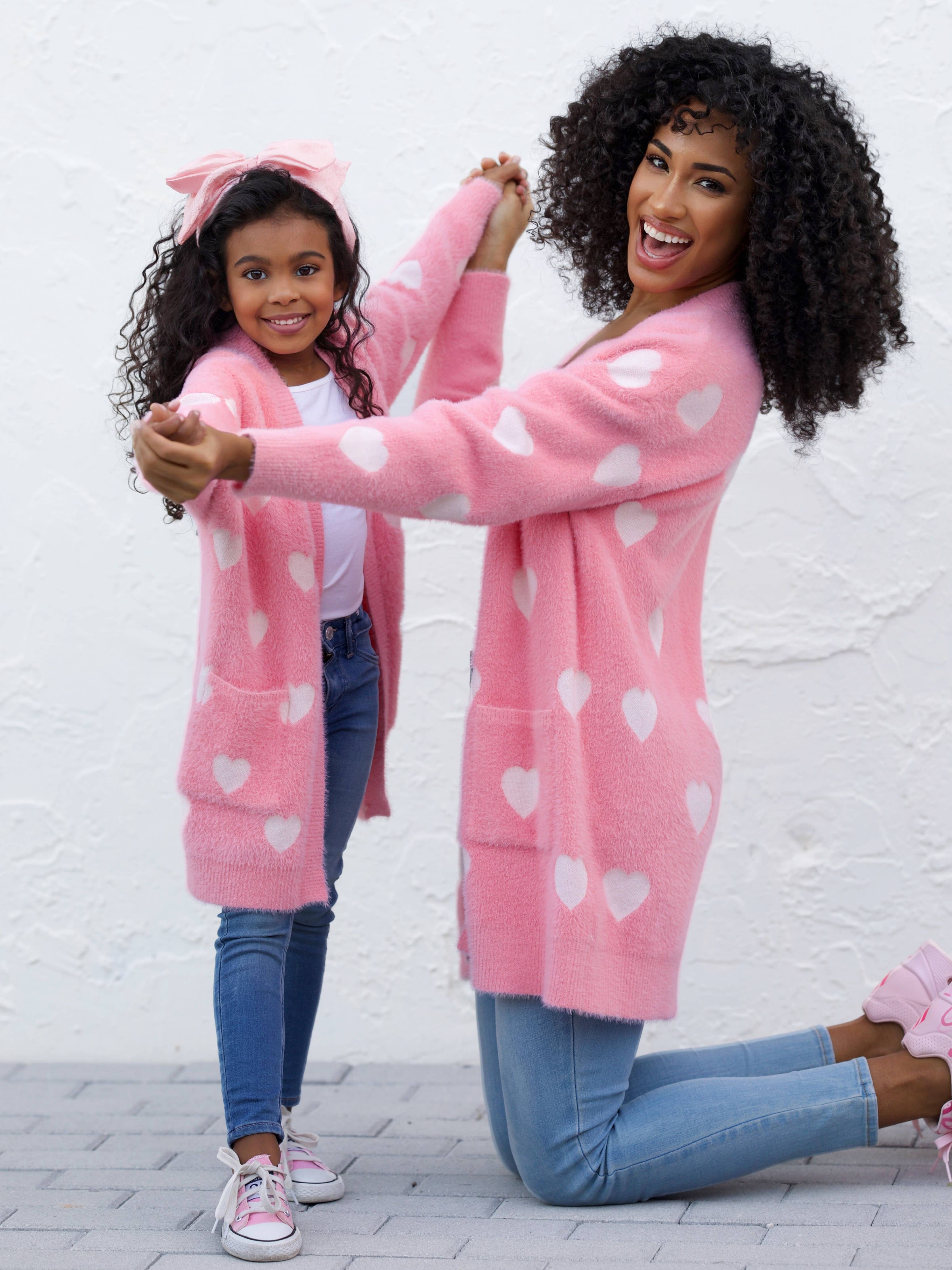 Mommy and Me Fuzzy All Over Heart Oversized Cardigan