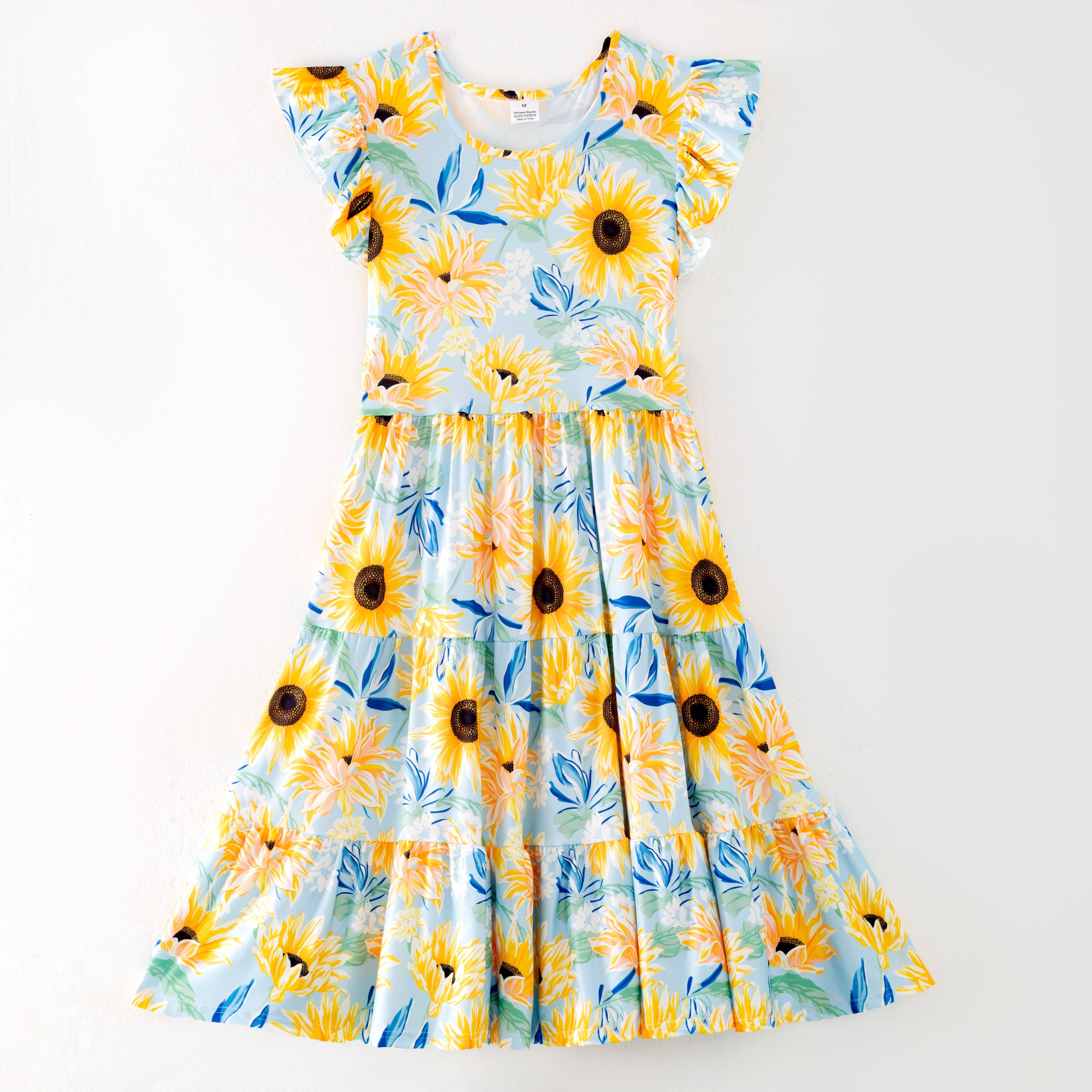 Mommy And Me Mother's Day Yellow Sunflower Print Dress