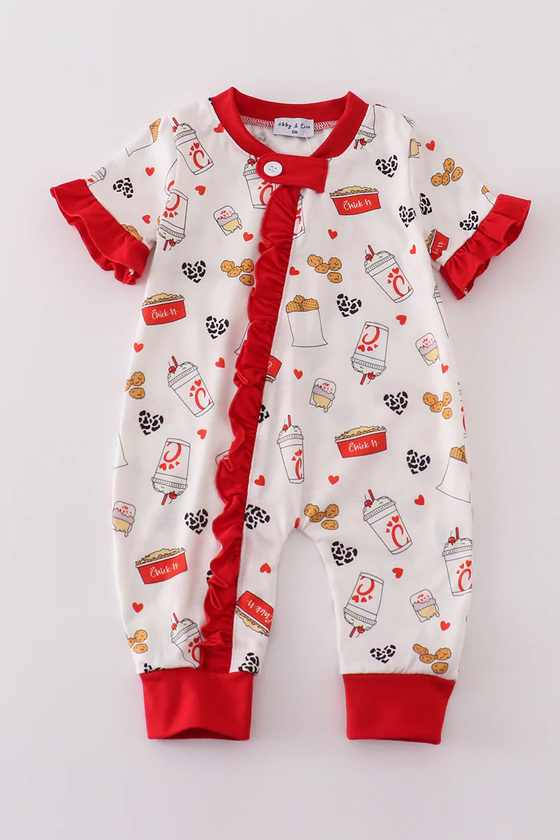 Order "Mommy and Me Red the lord's chicken print girl romper" by 6 PM for next-day delivery!
