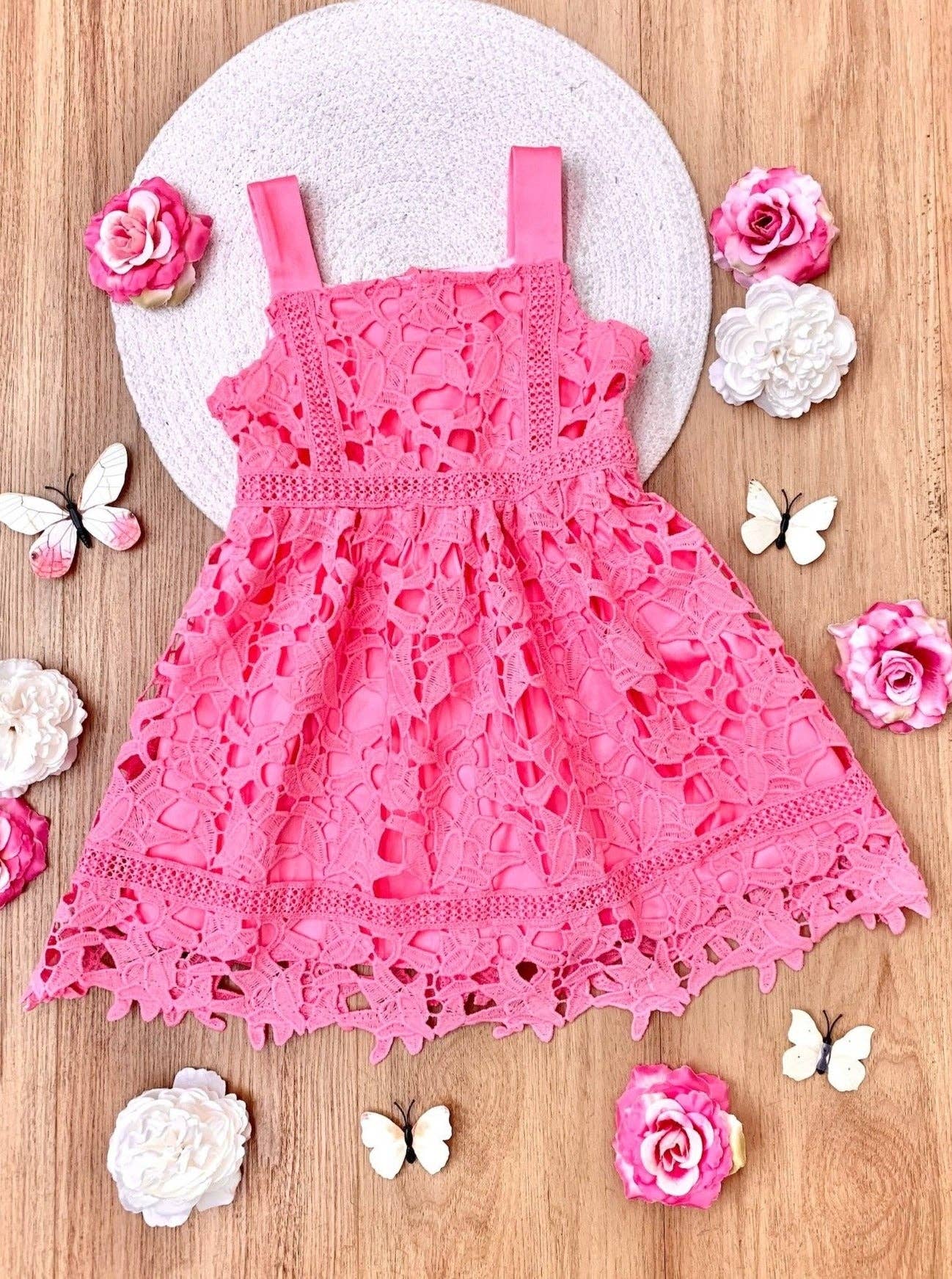 Don't miss out! Ordering your "Mommy & Me Spring Pink Dress w/ Crochet Overlay" by 6 PM today guarantees next-day delivery. This offer won't last long, so act fast!