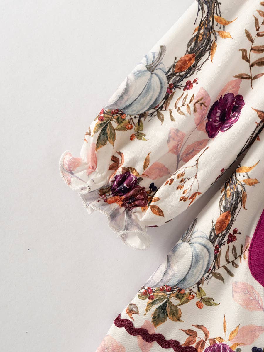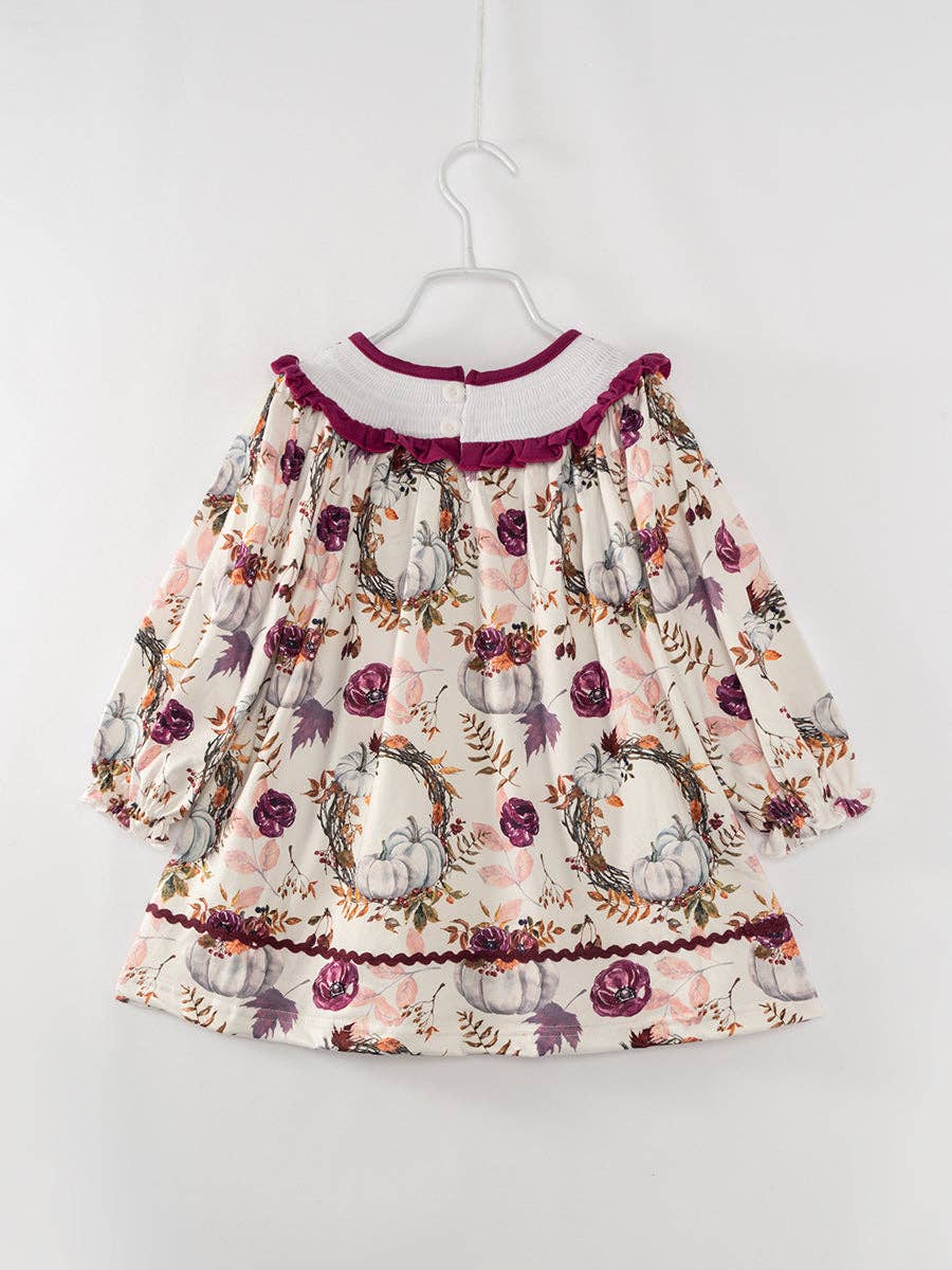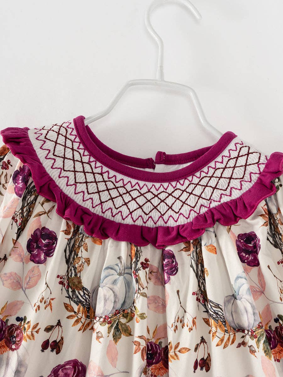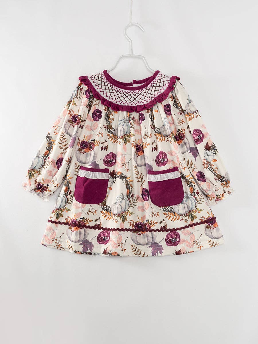 Purple Floral Pumpkin Pocket Girl Smocked Dress