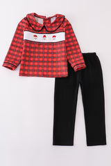 Order "Red christmas santa embroidery smocked plaid boy set" by 6 PM for next-day delivery!