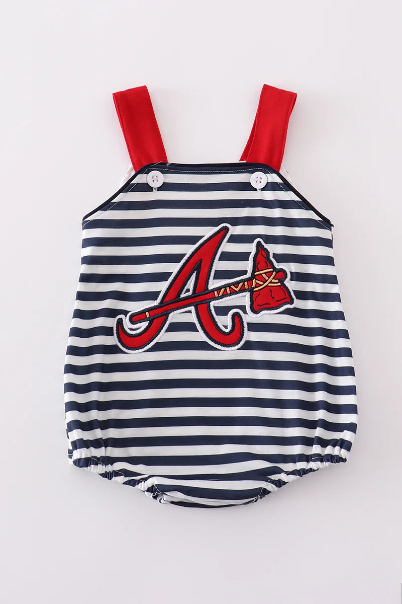 Red Georgia Atlanta Braves applique boy stripe bubble