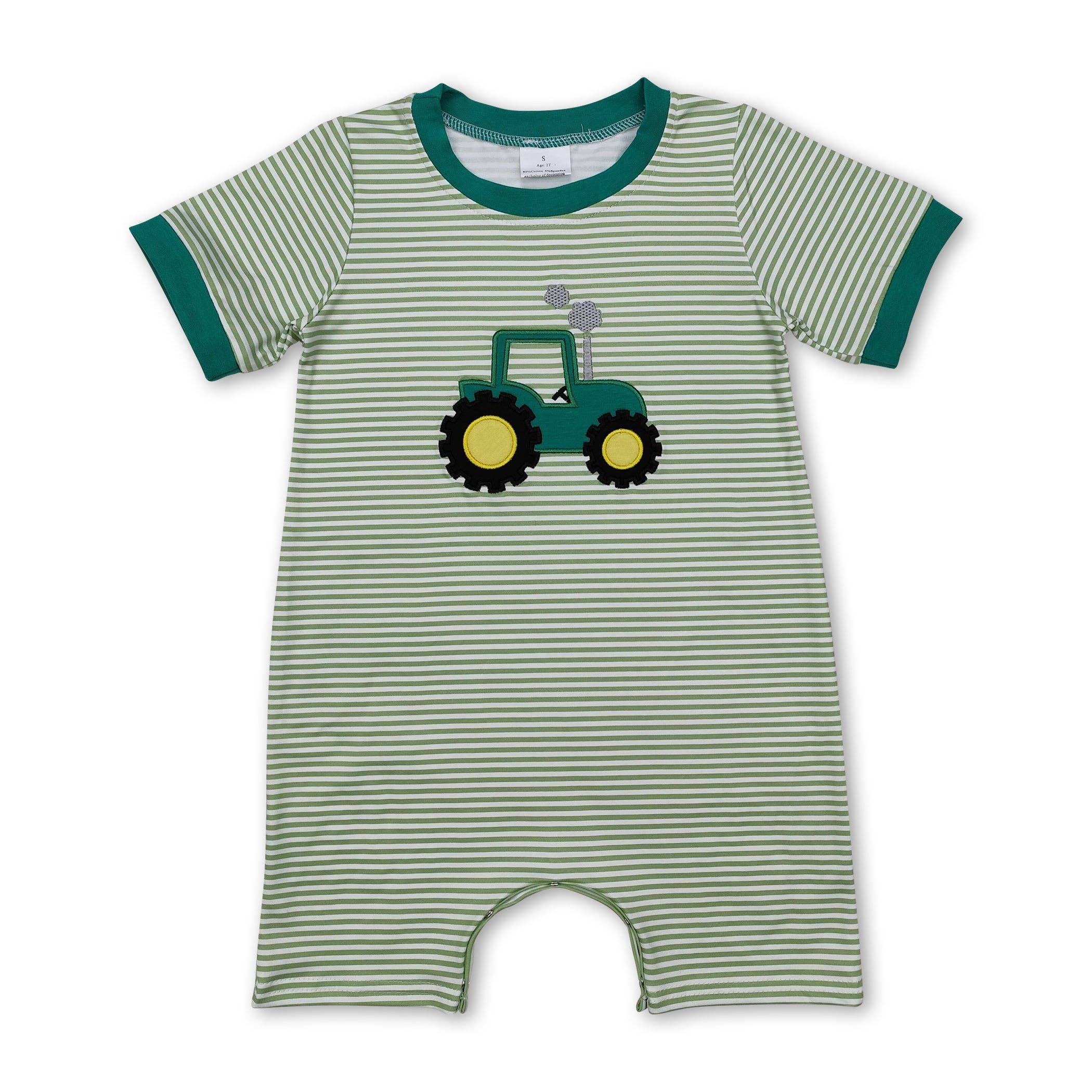 Order "Short sleeves green stripe tractor baby boy romper" by 6 PM for next-day delivery!