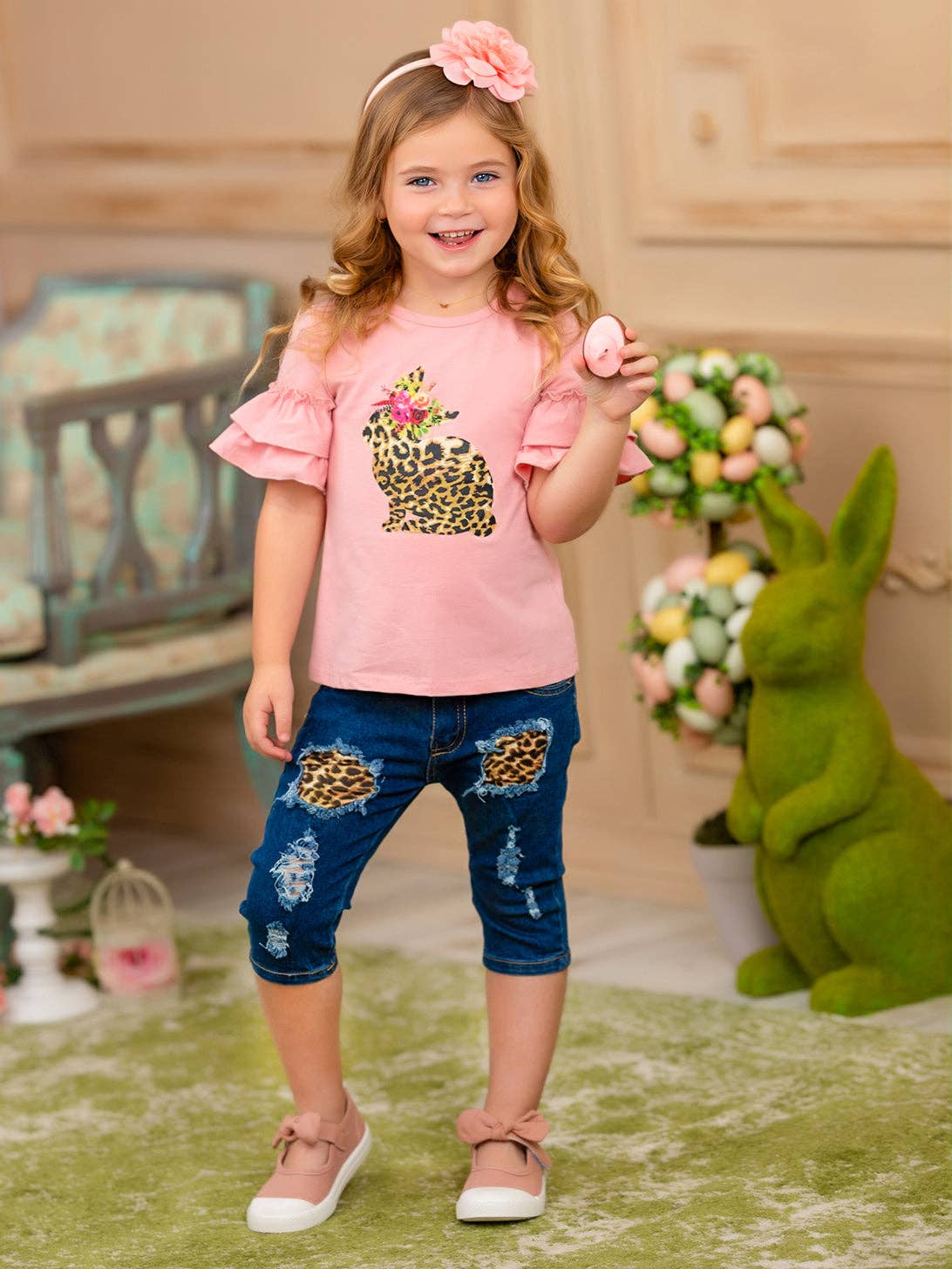 Order "Some Bunny Loves Leopard Patched Denim Capris Set" by 6 PM for next-day delivery!