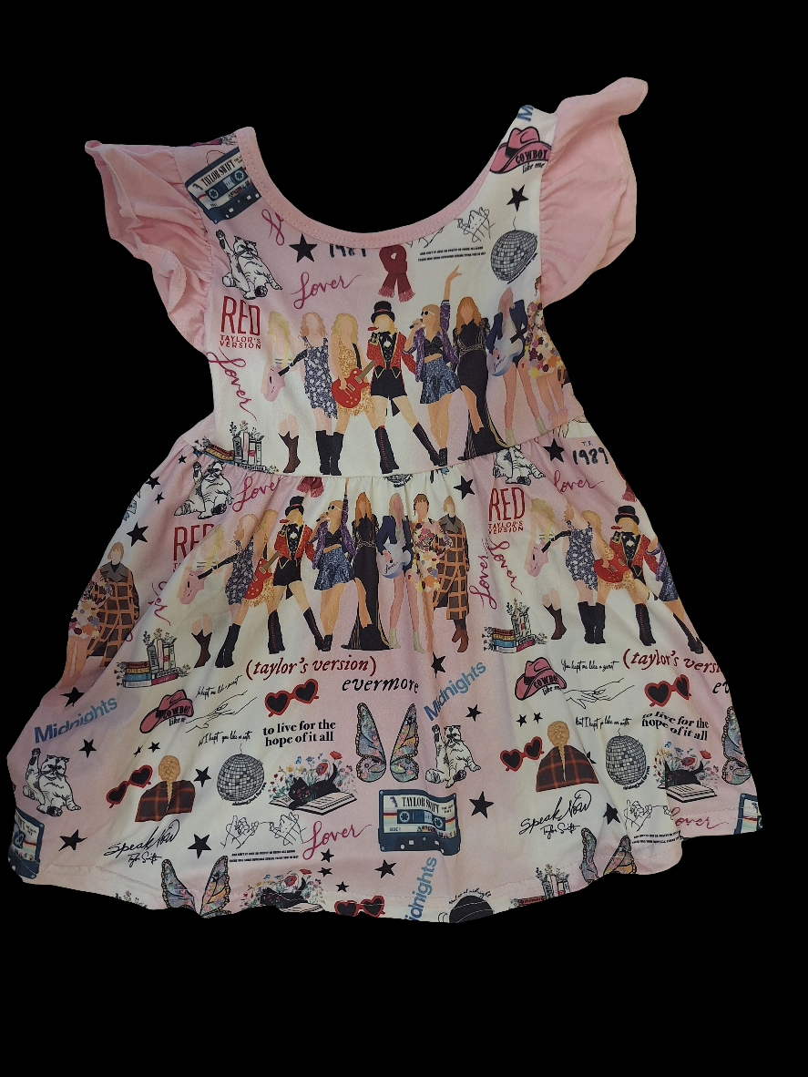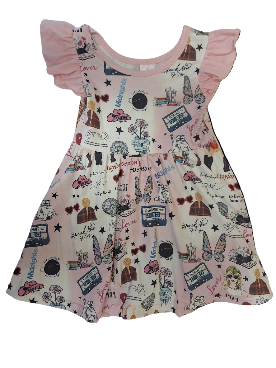 Taylor Swift Print ruffled Sleeve Dress